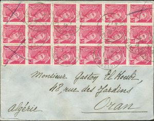 Il faut 18 timbres pour affranchir une lettre simple au tarif du 17 novembre 1938, comme pour cette lettre du 27 août 1939.