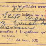Le nom de l’établissement destinataire est correct, mais pas son adresse.Un tampon au dos mentionne la rectification de l’adresse à Strasbourg. Ce qui motive le retour à l’envoyeur.